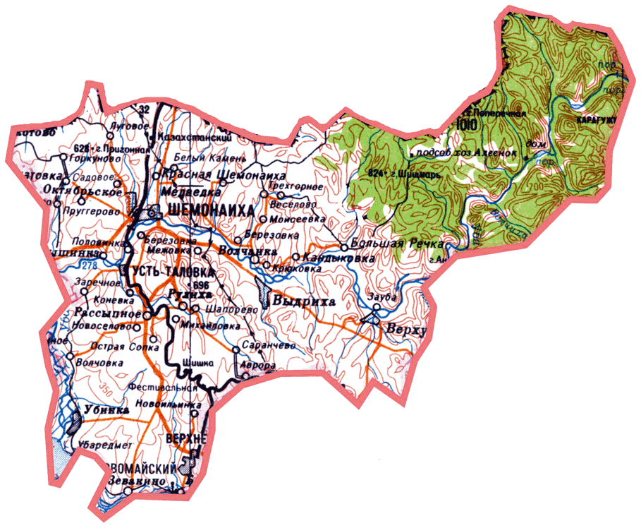 В районе 1 небольшой город, 2 поселка, 2 поселковых округа, 8 сельских округов, 43 сельских населенных пунктов.